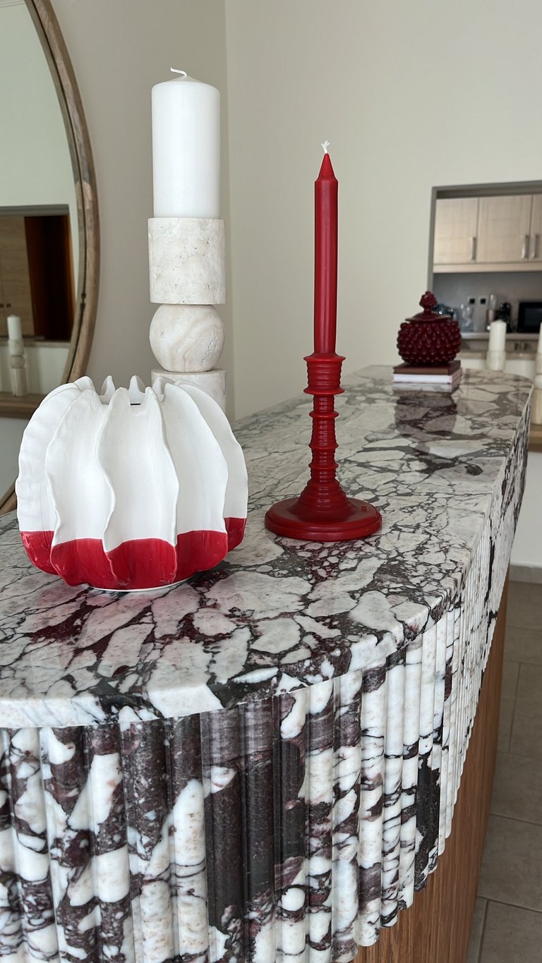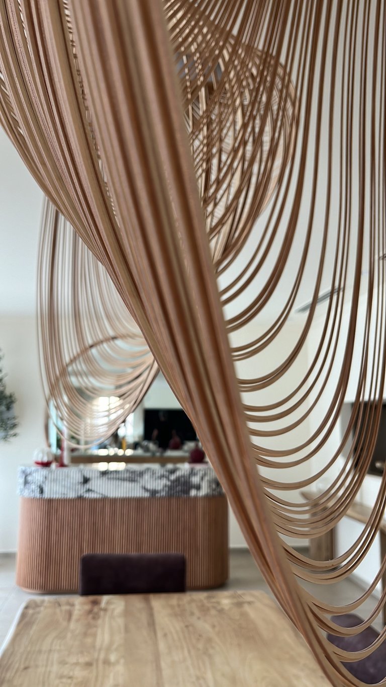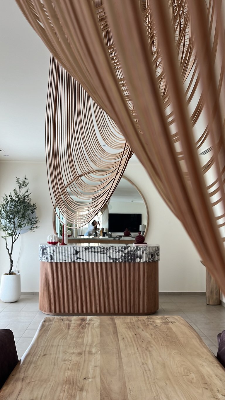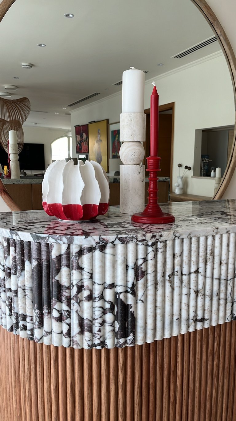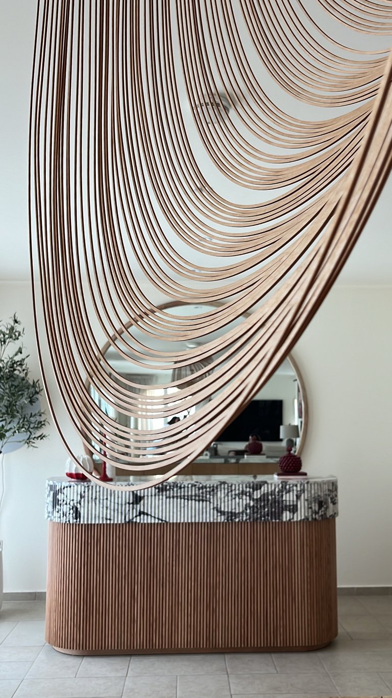 A refined blend of natural warmth and bold luxury, this custom bar pairs fluted wood craftsmanship with a fluted Calacatta Viola marble top, creating a playful and tactile interplay of materials. The rhythm of the fluted surfaces adds depth and movement, making it a striking centerpiece that draws the eye and defines the space. Designed to be both functional and timeless, it is a personal piece that will stay with the owner for years, embodying sophistication, practicality, and enduring character.