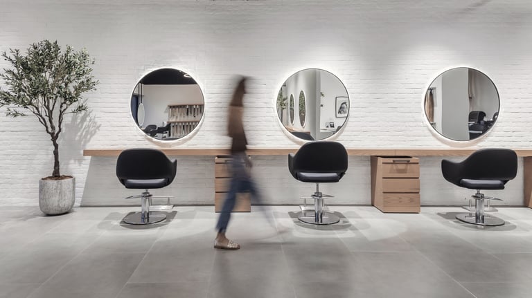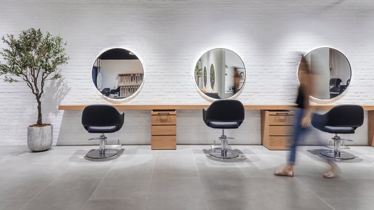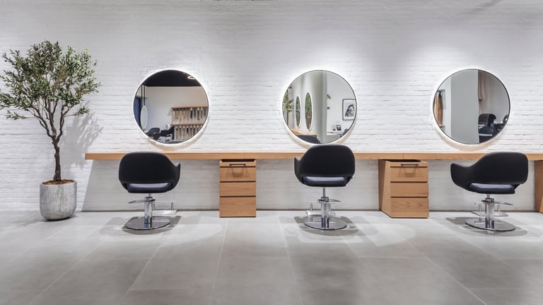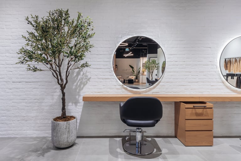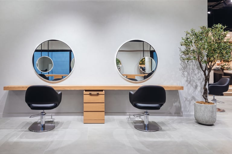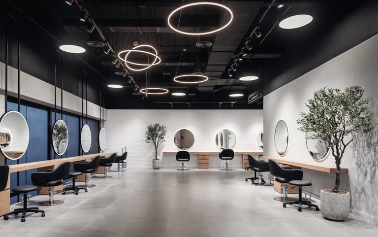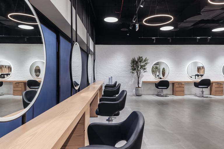 We transformed an empty, open space into a fully realized hair salon, developing a complete layout from scratch. The project combined custom design and renovation, with careful planning of distinct zones for styling, washing, and waiting, ensuring both functional flow and a welcoming, stylish atmosphere. Every element was thoughtfully considered: custom furniture was designed not only for aesthetics but also for practicality, with integrated sockets to support daily use and make the space highly functional for both staff and clients. The result is a salon that seamlessly blends design, comfort, and efficiency, offering a professional environment that feels sophisticated yet inviting.